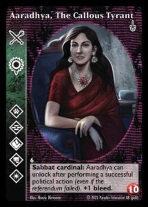 Aaradhya, The Callous Tyrant![]() Concordia ![]() Damian ![]() Khin Aye ![]() Lika, The Purger ![]() Lyyli Yösydän ![]() | Onkabetse, Arriviste![]() Rasha Tarabzouni ![]() Rexton "Savage" Abernathy ![]() Suwira ![]() Üresség ![]() Věnceslava, The Implacable ![]() |